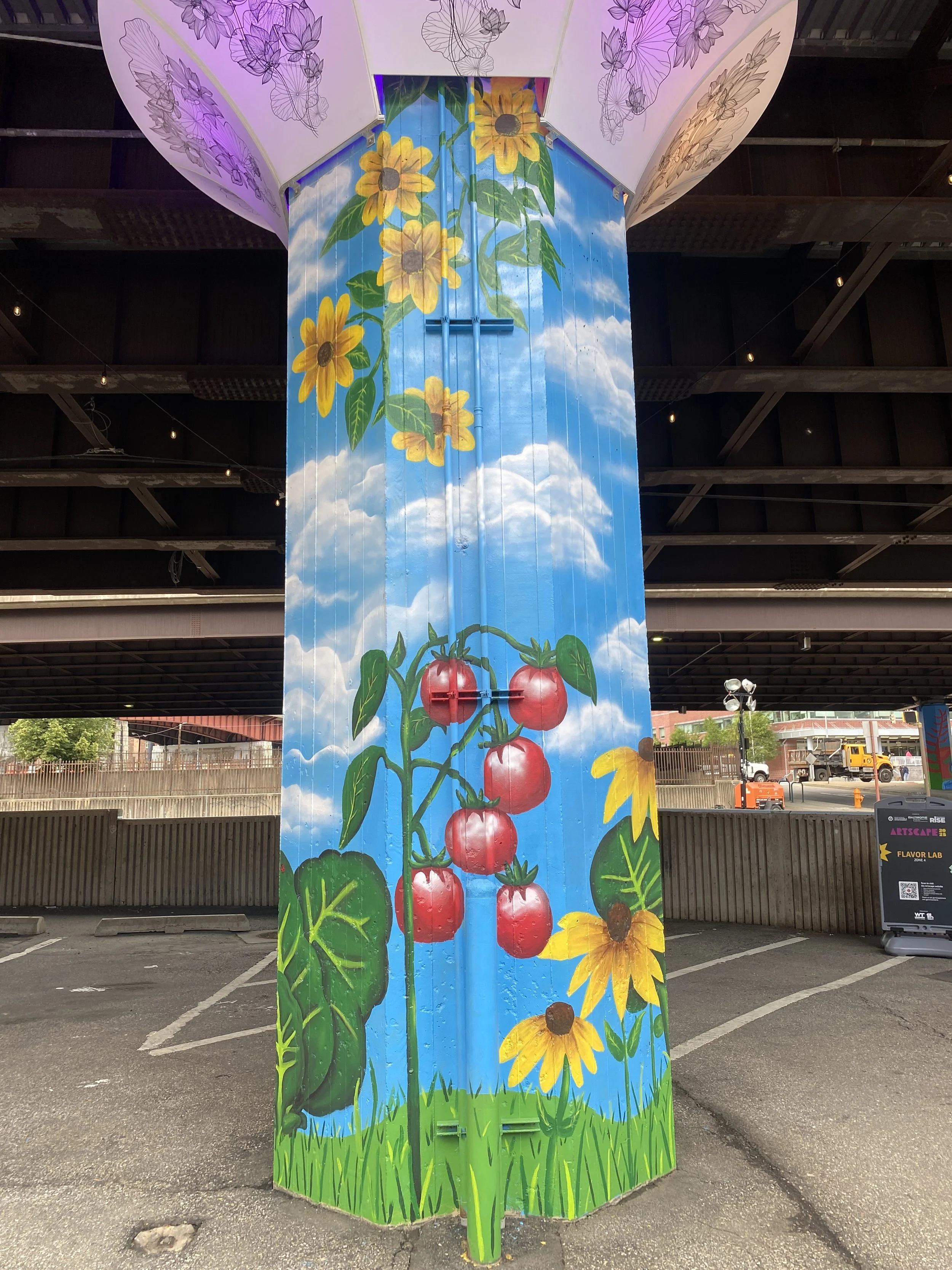 “The Eternal Spring of Hope”. Outdoor mural on concrete column commissioned by the Baltimore Office of Promotion and the Arts (BOPA) as a part of the Urban Oasis project for Artscape 2025.